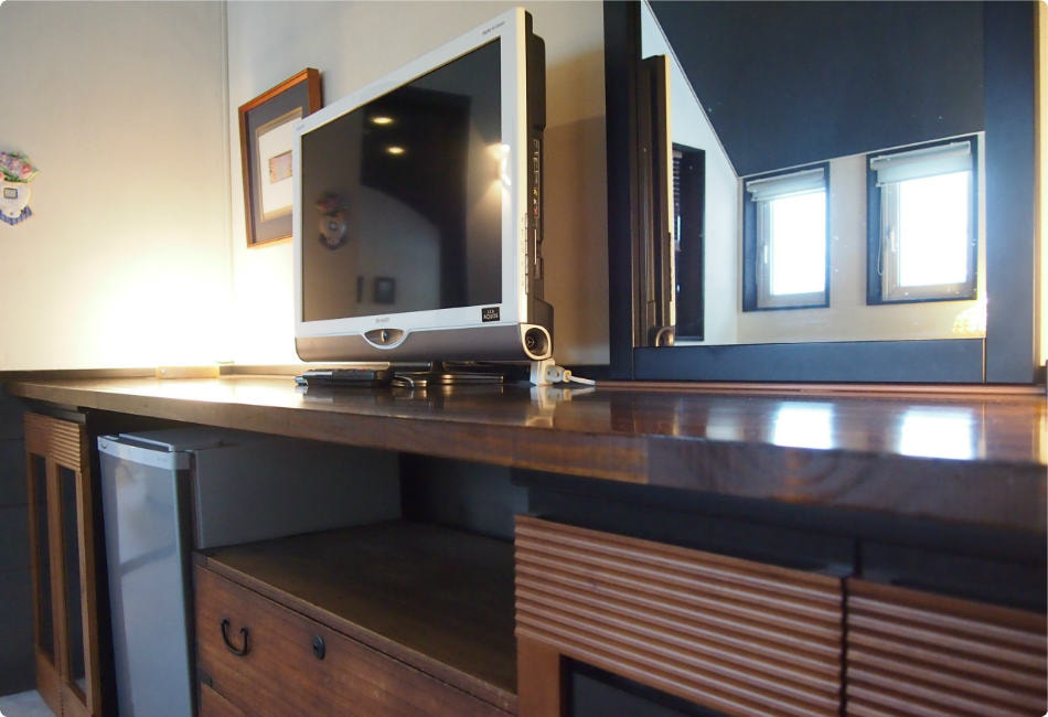 全室設置設備 冷暖房, TV, ドライヤー, フェイスタオル, バスタオル, 歯ブラシ, ヒゲそり, 浴衣類貸出し